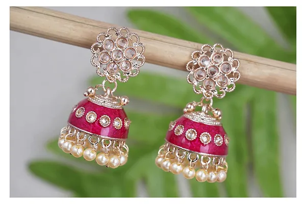 Pink Jewellery Pearl Enamel Meenakari Hand Painted Jhumka Earrings