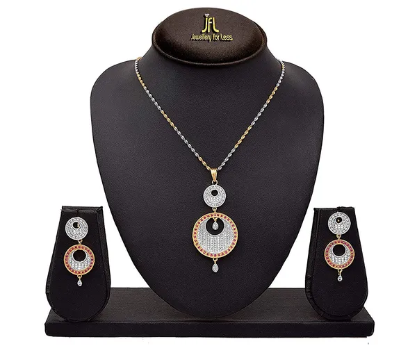 Pink Lovely American Diamond & Glossy St1 Pendant With Silver Golden Chain ..More