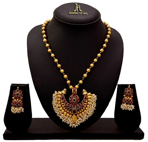Pink Lovely Pearl St1 Embedded Design Pendant Set With Chains