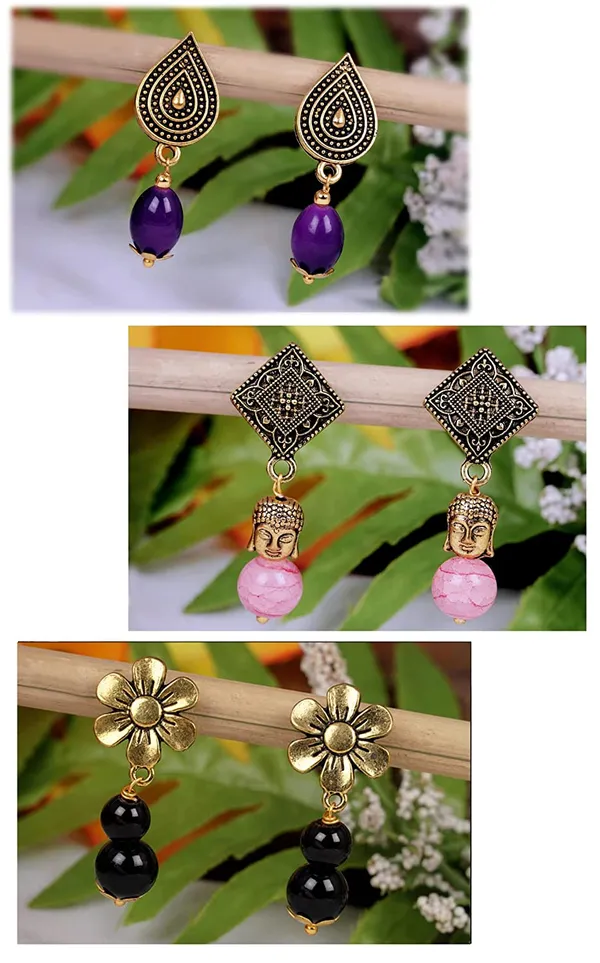 Purple, Black, Peach Oxidised Gold Plated Handmade Beaded Dangler Earring