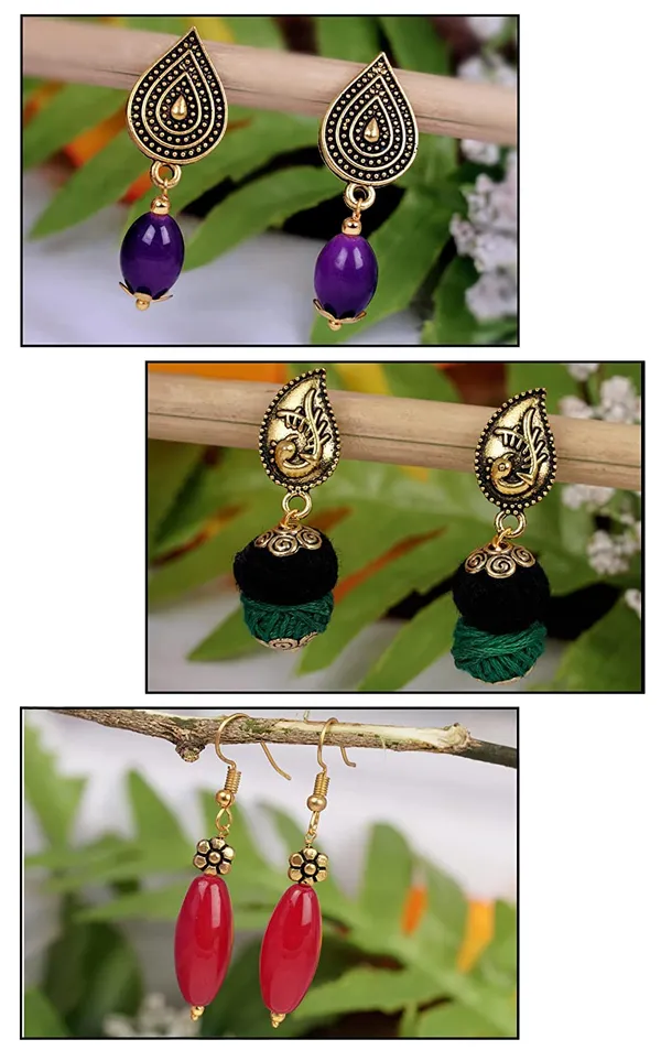 Purple, Green,Red Fancy Oxidised German Gold Plated Handmade Cotton Beaded ..More