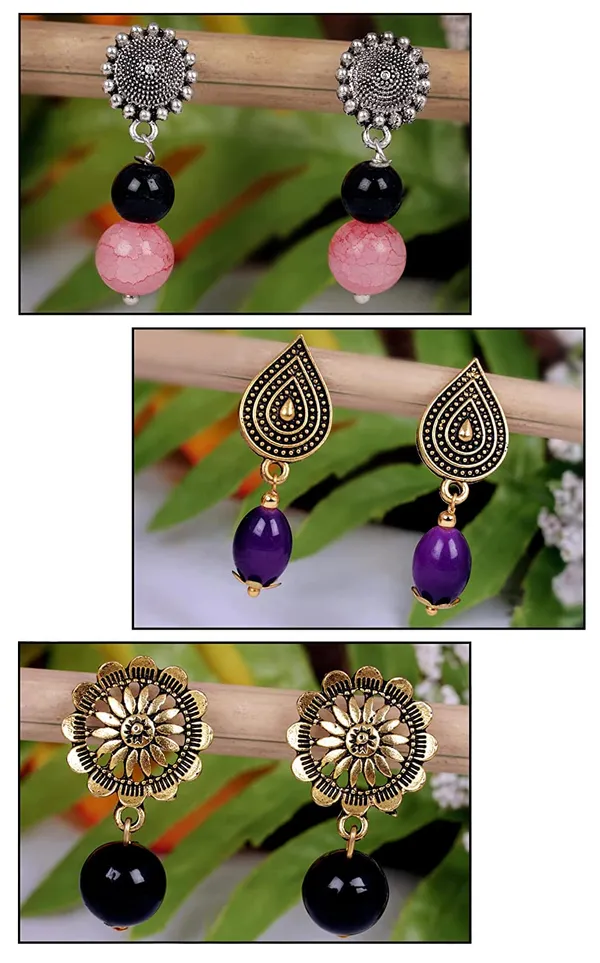 Purple, Pitch, Black Oxidised Gold & Silver Plated Handmade Beaded Dangler ..More