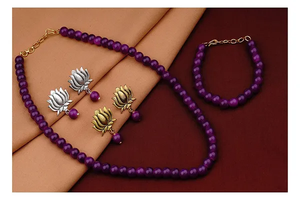 Purple Combo Of Necklace, Bracelet And 2 Pairs Of Earrings