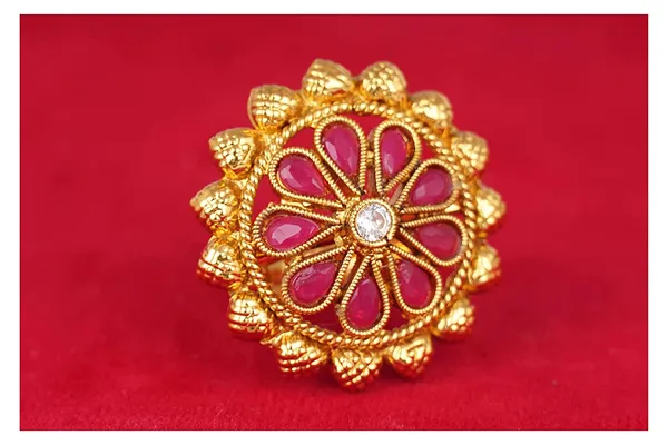 Purple Gold Plated & Purple St1 Studded Adjustable Finger Ring