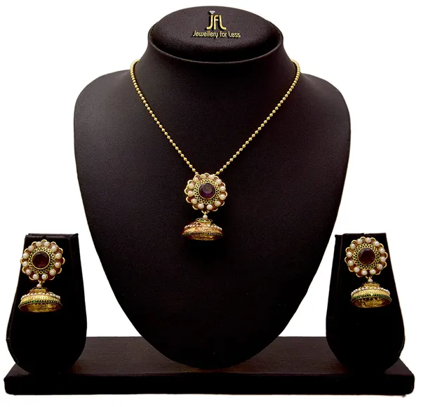 Purple,Green 1 Gm Gold Plated Pearl St1 Pendant Sets