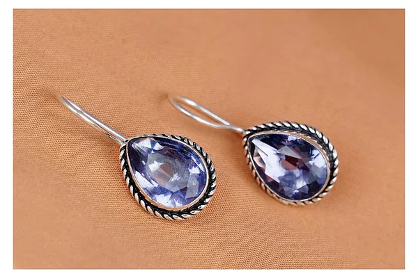 Purple Oxidized Silver Plated Drop Shape Crystal Earring/Girls