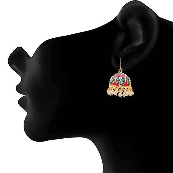 JFL - Fusion Ethnic One Gram Gold Plated Rani & Green Meenakari Designer Jhumki Earring & Girls