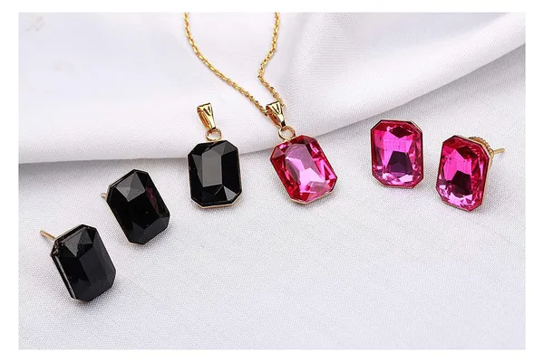 Rani Pink And Black Combo Gold Plated Crystal Pendant With Chain And Earrin..More