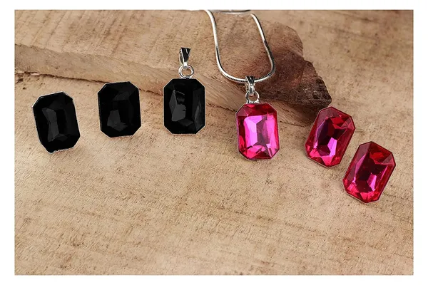 Rani Pink And Black Combo Silver Plated Crystal Pendant With Silver Chain A..More