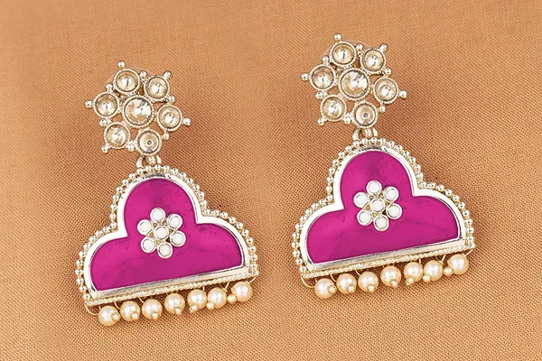 JFL - Jewellery for Less Gold Tone Floral Scallop Shape Meenakari Painted Cz LCD Stone Studded with Drop Pearl Dangler Earring Women love jewellery specially Fashions jewellery adore a women You can wear this Earrings on all occasion This beautiful piece of jewellery will enhance your beauty and compliment you Make your moment memorable with this high quality fashion earrings This earrings women’s wear on like ring ceremony, wedding and any traditional festive time, daily wear,office wear This pretty earring pair makes your look impressive for any occasion It will make your moment memorable with this range This designed Earrings will go well matching With Any Attire Like dress,saree This set will definitely be a treasured inclusion in every woman's jewellery collection new range of fashion earrings - Designer, Classy, Charming, Elegant, Appealing, Affordable, Casual as well as party wear, Pocket-friendly, Superb quality, High quality plating, Skin friendly, Non-allergic, Attractive, Mesmerising, etc