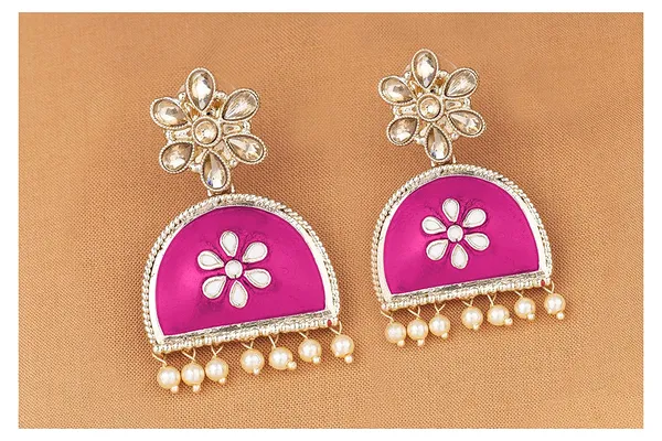 JFL - Jewellery for Less Gold Tone Semi Circle Meenakari Painted Cz LCD Stone Studded with Drop Pearl Dangler Earrings Women love jewellery specially Fashions jewellery adore a women You can wear this Earrings on all occasion This beautiful piece of jewellery will enhance your beauty and compliment you Make your moment memorable with this high quality fashion earrings This earrings women’s wear on like ring ceremony, wedding and any traditional festive time, daily wear,office wear This pretty earring pair makes your look impressive for any occasion It will make your moment memorable with this range This designed Earrings will go well matching With Any Attire Like dress,saree This set will definitely be a treasured inclusion in every woman's jewellery collection new range of fashion earrings - Designer, Classy, Charming, Elegant, Appealing, Affordable, Casual as well as party wear, Pocket-friendly, Superb quality, High quality plating, Skin friendly, Non-allergic, Attractive, Mesmerising, etc