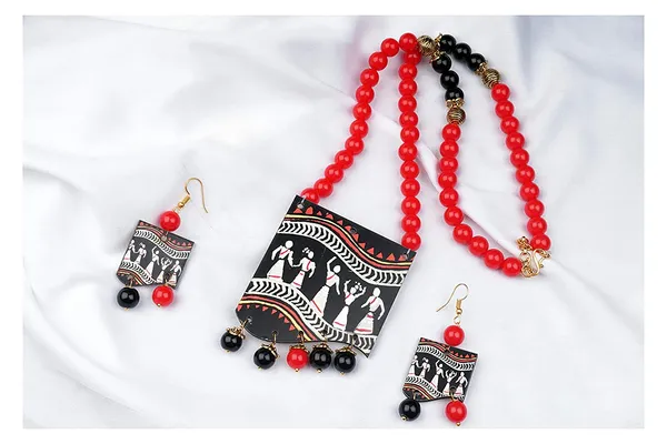 Red, Black & Red Warli Art Beaded Necklace Set