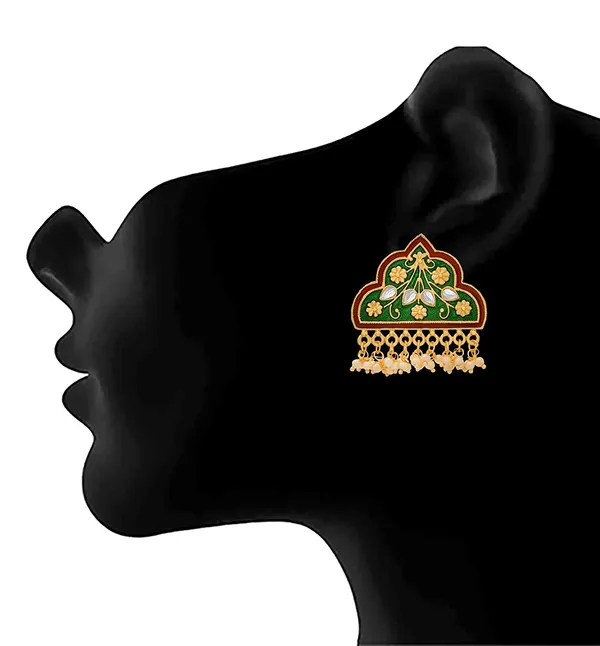 Red, Green 1 Gm Gold Plated Meenakari Earrings