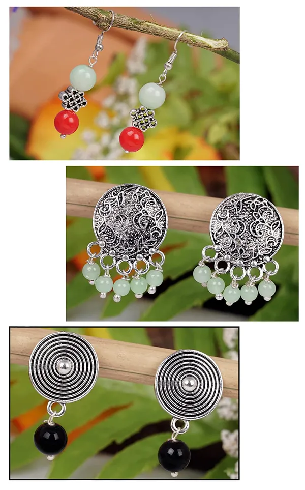 Red, Mint Green, Blue Contemporary Oxidised Silver Plated Handmade Beaded D..More