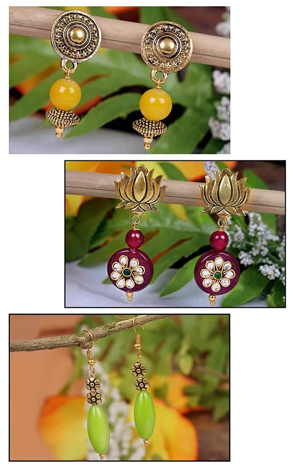 Red, Yellow, Green Contemporary Oxidised Gold Plated Handmade Beaded Dangle..More