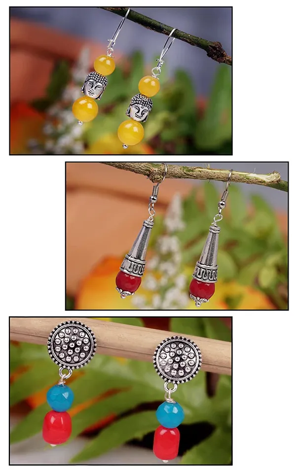 Red, Yellow, Maroon Contemporary Oxidised Silver Plated Handmade Beaded Dan..More