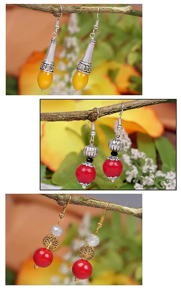 Red, Yellow, Maroon Contempropray Handmade Beaded Dangler Earring