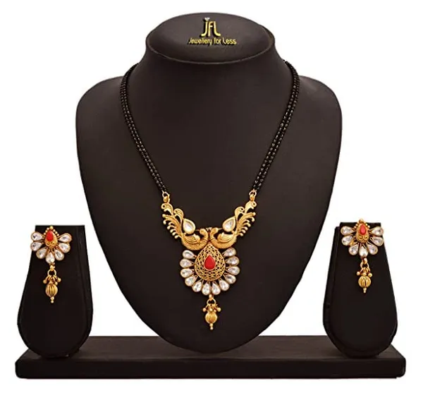 JFL -Traditional Ethnic One Gram Gold Plated Diamond & Kundan With Peacock Designer Mangalsutra Set