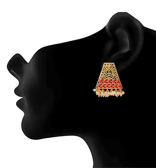 JFL - Traditional Ethnic One Gram Gold Plated Pearl & GemStone Designer Earring & Girls