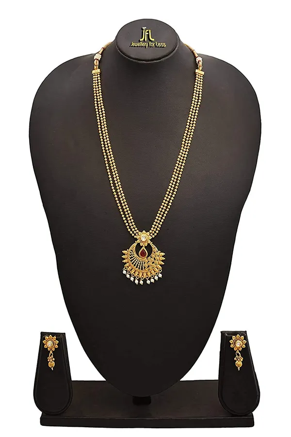 JFL -Traditional Ethnic One Gram Gold Plated Kundan & Pearl Designer Necklace Set