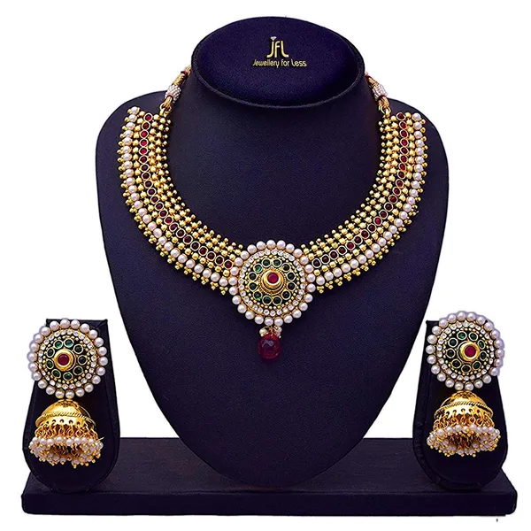 Red And 1 Gm Gold Plated & St1 White Pearl Necklace / Jewellery Set