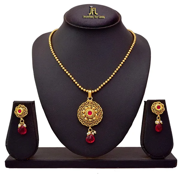 Red Beautiful Glossy St1 Pendant With Chain & Earring Sets
