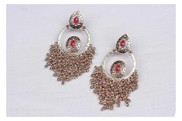 Red Gold Plated Drop St1 Pearl With Chandbali Dangler Earrings