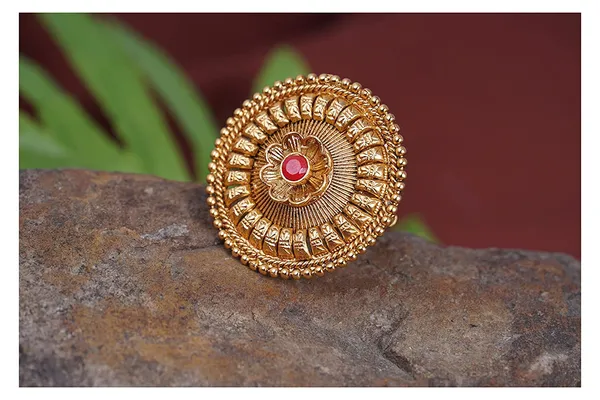 Red Gold Plated Floral St1 Studded Adjustable Finger Ring