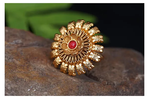 Red Gold Plated Floral St1 Studded Adjustable Finger Ring