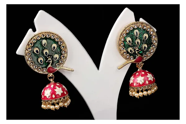 JFL - Jewellery for Less Gold Tone Meenakari Peacock Pearl Earrings Women love jewellery specially Fashions jewellery adore a women You can wear this Earrings on all occasion This beautiful piece of jewellery will enhance your beauty and compliment you Make your moment memorable with this high quality fashion earrings This earrings women’s wear on like ring ceremony, wedding and any traditional festive time, daily wear,office wear This pretty earring pair makes your look impressive for any occasion It will make your moment memorable with this range This designed Earrings will go well matching With Any Attire Like dress,saree This Earrings will definitely be a treasured inclusion in every woman's jewellery collection new range of fashion earrings - Designer, Classy, Charming, Elegant, Appealing, Affordable, Casual as well as party wear, Pocket-friendly, Superb quality, High quality plating, Skin friendly, Non-allergic, Attractive, Mesmerising, etc