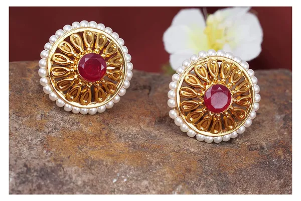 Red Gold Plated Pearl Studded Stud Earring