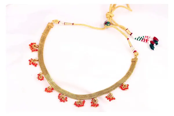 Red Gold Plated Small Beaded Choker Necklace With Adjustable Thread