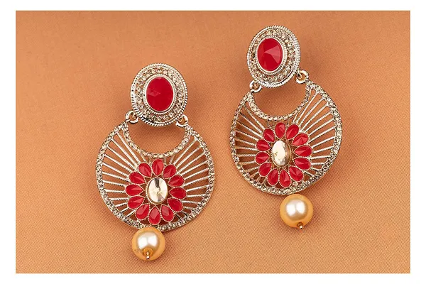 JFL - Jewellery for Less Gold Tone Cz LCD Diamond and Polki Stone Studded Chandbali Earrings Women love jewellery specially Fashions jewellery adore a women You can wear this Maang Tikka and Earrings on all occasion This beautiful piece of jewellery will enhance your beauty and compliment you Make your moment memorable with this high quality fashion earrings This Maang Tikka and Earrings women’s wear on like ring ceremony, wedding and any traditional festive time, daily wear, office wear This pretty Maang Tikka and Earring pair makes your look impressive for any occasion It will make your moment memorable with this range This designed Maang Tikka and Earrings will go well matching With Any Attire Like dress, saree This Earrings will definitely be a treasured inclusion in every woman's jewellery collection new range of fashion Maang Tikka and earrings - Designer, Classy, Charming, Elegant, Appealing, Affordable, Casual as well as party wear, Pocket-friendly, Superb quality, High quality plating, Skin friendly, Non-allergic, Attractive, Mesmerising, etc