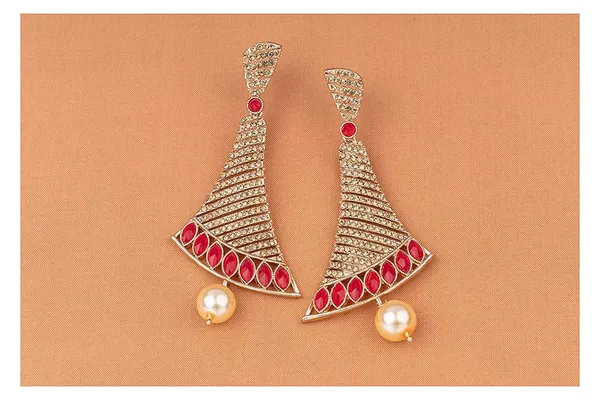 Red Gold T1 Austrian Diamond And Polki St1 Studded Drop Dangler Earrings