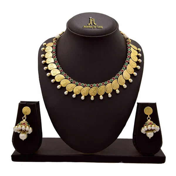 JFL -Traditional Ethnic One Gram Gold Plated Goddess Laxmi With Pearl Designer Necklace Set