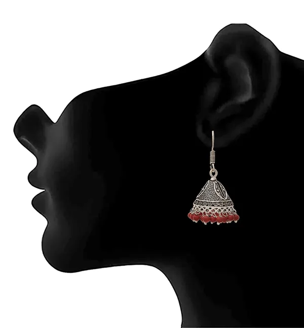 Red Handmade German Silver Plated Oxidised Bead Earring