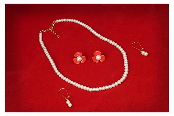 Red Imitation Pearl 8Mm Strand Necklace Moti Mala Jewellery Set With Combo ..More