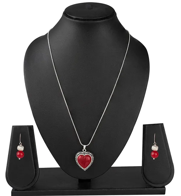 Red Silver Plated Heart Collection St1 Pendant Set