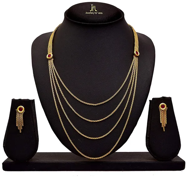 JFL -Womens Gold Plated Multi Strand Chaiin Necklace With Earring Set For Ladies & Girls(Red)
