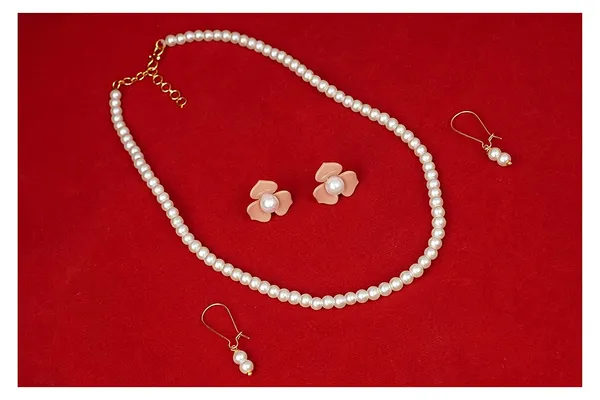 Rose Gold Imitation Pearl 4Mm Strand Necklace Moti Mala Jewellery Set With ..More
