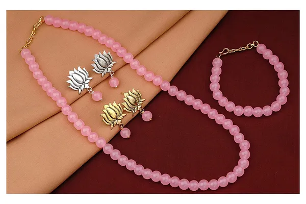 Rose Pink Combo Of Necklace, Bracelet And 2 Pairs Of Earrings