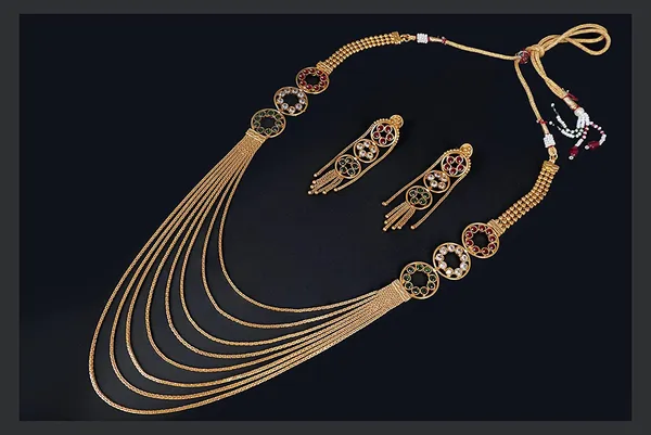 Ruby Red, White, Green Gold Plated Multi Strand Chain Ruby , White And Colo..More