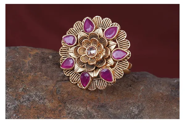 Ruby Red Matte Gold Plated Ruby & St1 Studded Finger Ring
