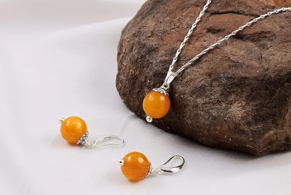 Semi Precious Reiki Gemstone Onyx Bead Pendant Set With Earrings Handcrafte..More