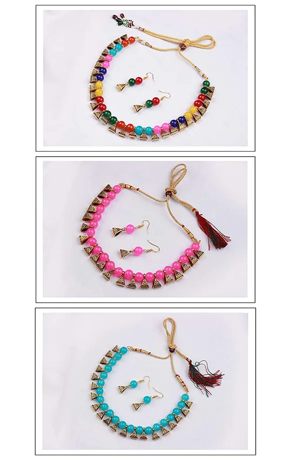 Set Of 3 (Pbm) Combo Of 3 German Oxidized And Onyx Beaded Necklace Set With..More