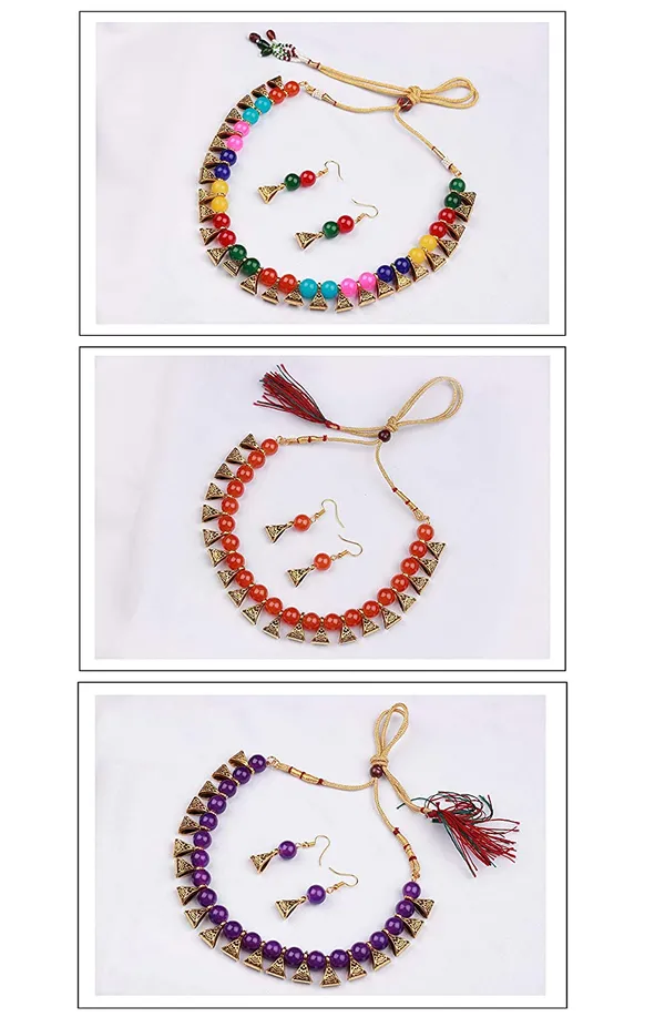 Set Of 3 (Pom) Combo Of 3 German Oxidized And Onyx Beaded Necklace Set With..More