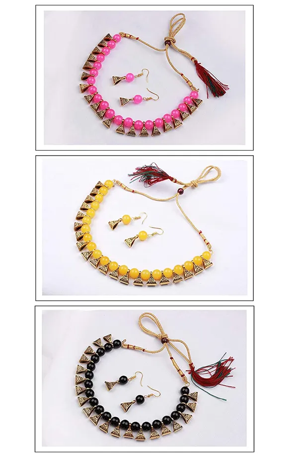 Set Of 3 (Pyb) Combo Of 3 German Oxidized And Onyx Beaded Necklace Set With..More