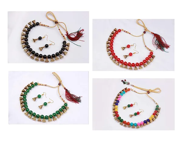 Set Of 4 (Rgbm) Combo Of 4 German Oxidized And Onyx Beaded Necklace Set Wit..More