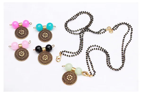 Set Of 5 (Gbpbp) Combo Of Multi Bead And Floral Round Oxidise Pendant With ..More