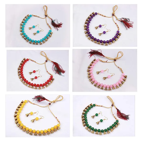 Set Of 6 (Bpp Yrg) Combo Of 6 German Oxidized And Onyx Beaded Necklace Set ..More